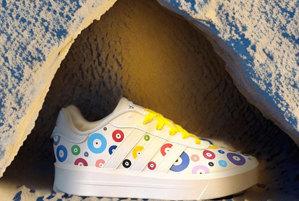 Ζωγραφισμένα παπούτσια με θέμα πολύχρωμα μάτια βασκανίας.