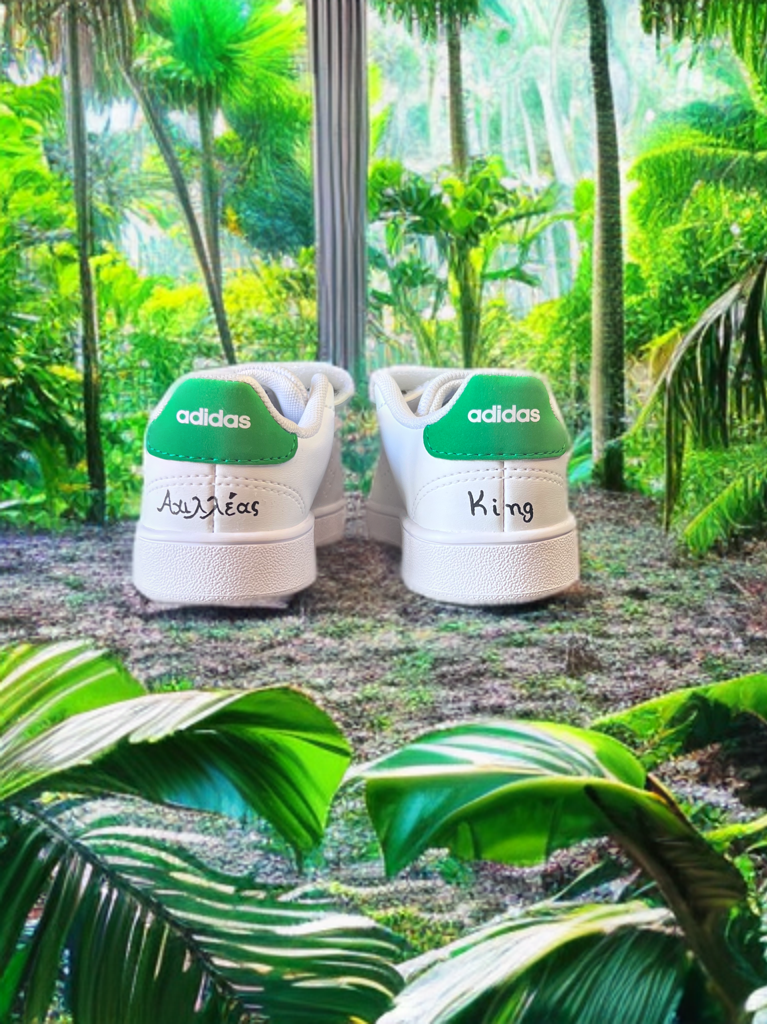 Διαχρονική και πολυαγαπημένη ταινία ο Βασιλιάς των Λιονταριών, κυριαρχεί σε αυτά τα μικρούλικα παπουτσάκια ! Στο πίσω μέρος είναι ζωγραφισμένο το όνομα του παιδιού «Αχιλλέας», στο ένα παπούτσι το λιοντάρι Simba και στο άλλο ο Timon και ο Pumba.