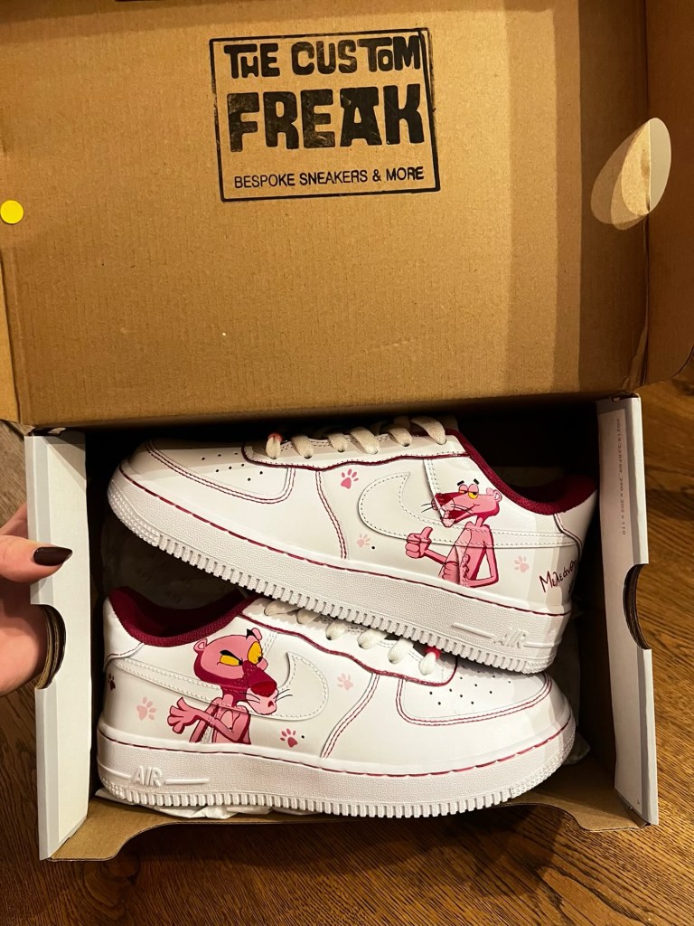 Ζωγραφισμένα αθλητικά χαρούμενα παπούτσια με θέμα τον Ροζ Πάνθηρα !