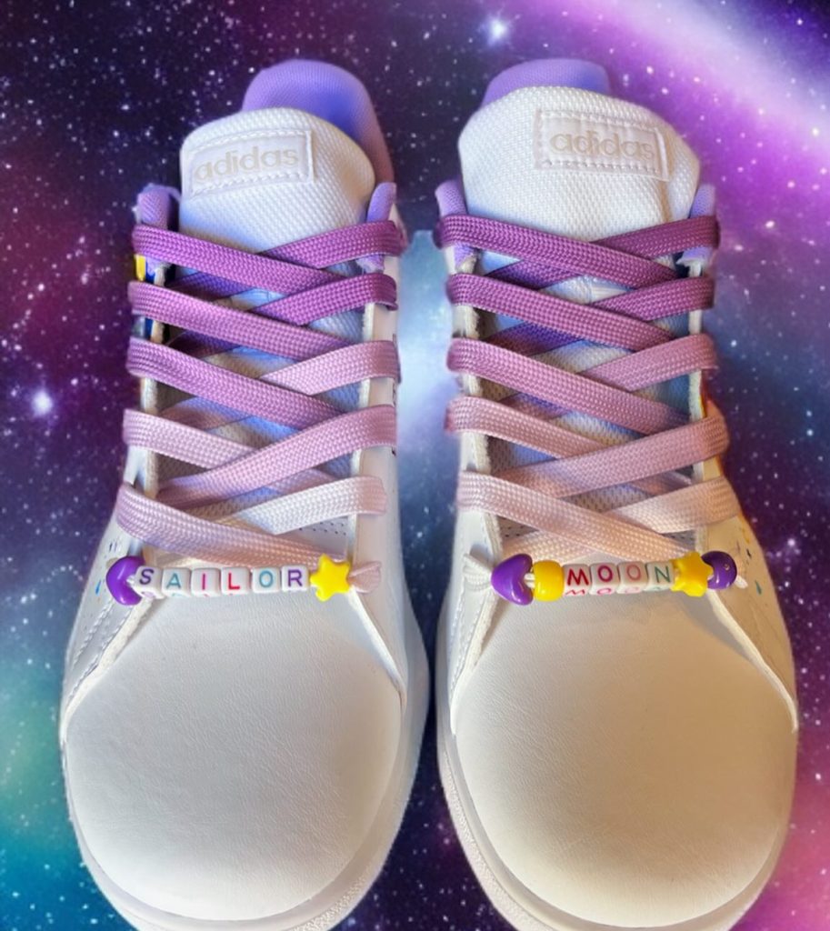 Έχω βάψει το εσωτερικό του παπουτσιού & έχω βάλει χρωματιστά κορδόνια με χάντρες που γράφουν το «Sailor Moon».